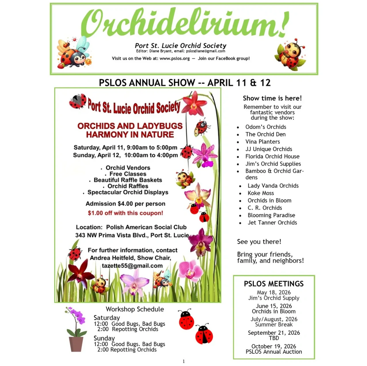 Our meetings are held on the 3rd Monday of every month at 1:00 p.m. at the Port St. Lucie Botanical Gardens except for: